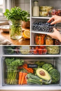 | Fresh herbs | Fridge, stems in water | 1–3 weeks | Treat like flowers — snip stems, cover loosely with a bag |