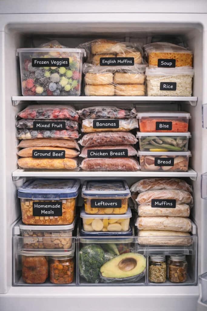 Label everything with the contents and the date, without exception. A piece of masking tape and a marker takes three seconds and saves the frozen meal from becoming a mystery six months from now. Freeze flat whenever possible — soups, stews, beans, and grains frozen in zip bags laid flat stack like file folders and take up a fraction of the space of round containers. And keep a simple list on the freezer door of what is inside. Even a handwritten sticky note updated when things go in or come out changes your relationship with the freezer entirely.